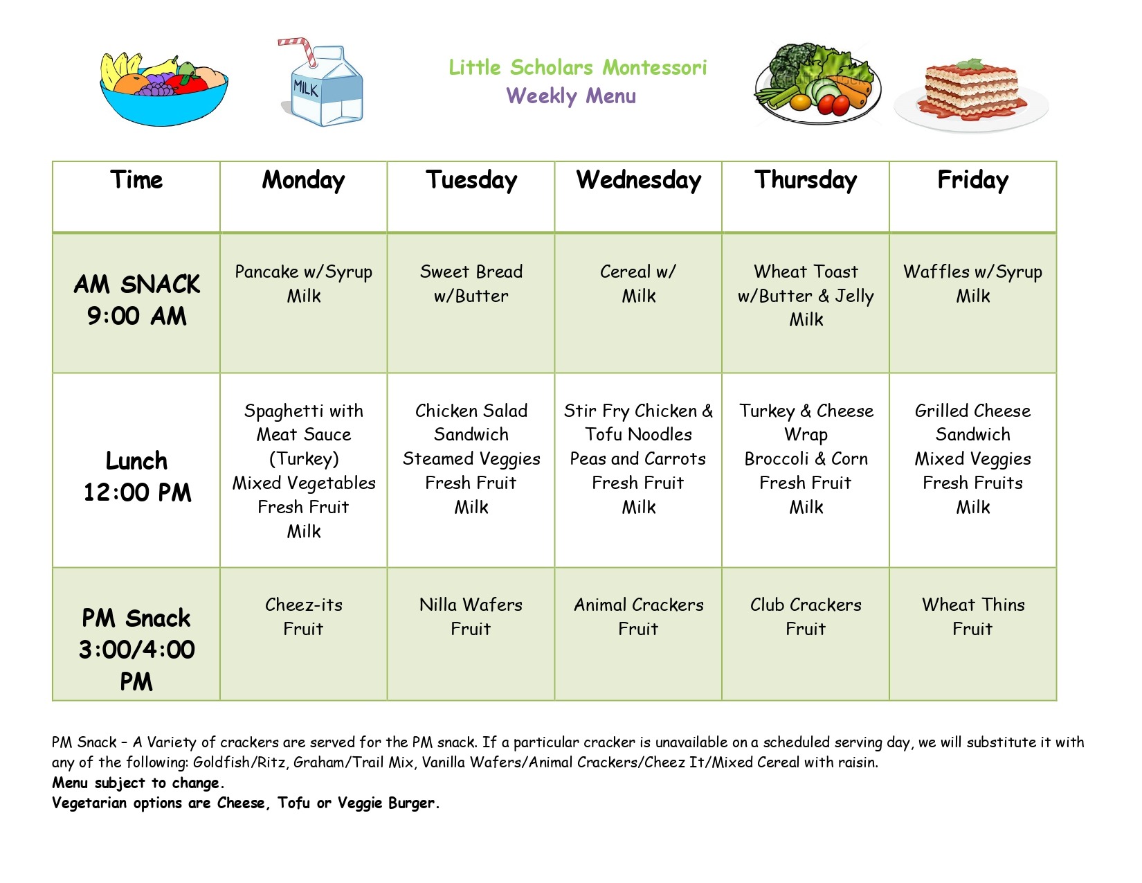 We offer full-day and half-day programs year-round. Parents can choose between morning, afternoon, or full-day programs that are two, three, four, or five days per week. The school’s operational hours are from 7 a.m. to 6 p.m., Monday to Friday. The school provides nutritious snacks and hot lunches that are prepared in-house for no additional charge.